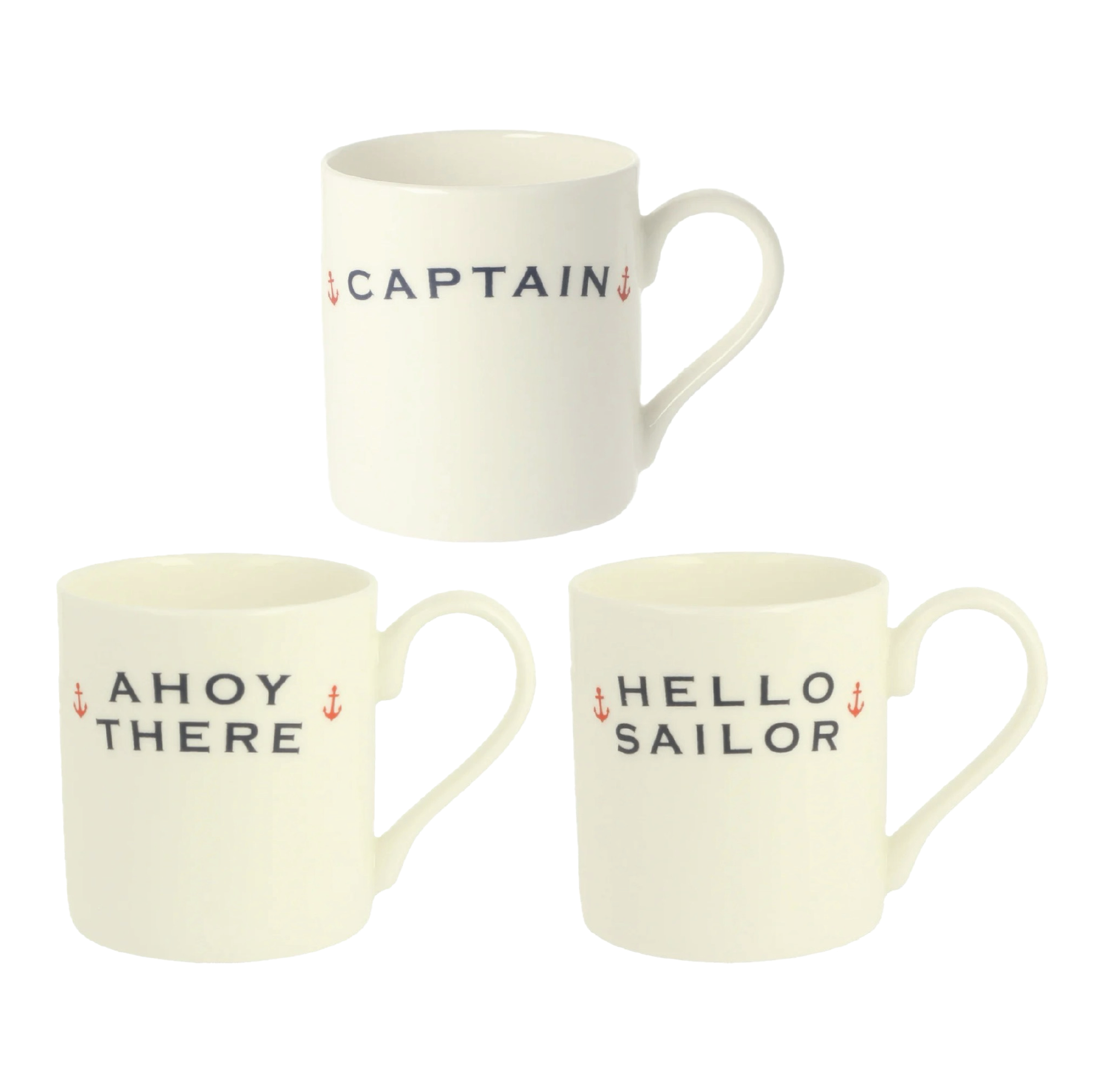 The perfect gift for the Captain of the ship (or house). Screen-printed, hand-decorated, and kiln-fired in the UK. Also available in Hello Sailor and Ahoy There.